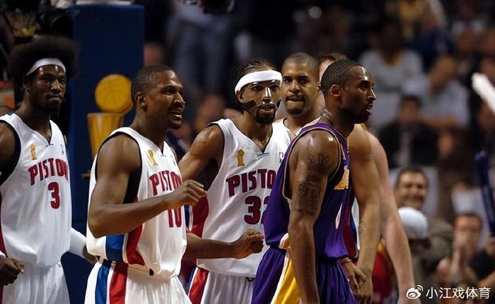 03-04赛季湖人四巨头总决赛不敌活塞也成为了许多人心中的意难平,不过也该人家活塞夺冠,在球队整体阵容配备和战术素养方面,活塞是要比湖人强上不少的。